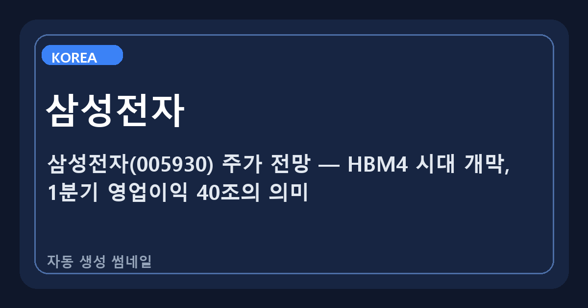 삼성전자(005930) 주가 전망 — HBM4 시대 개막, 1분기 영업이익 40조의 의미