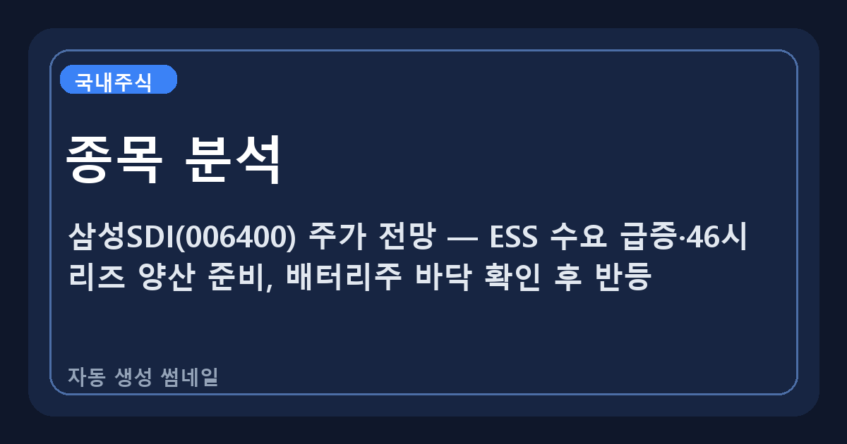 삼성SDI(006400) 주가 전망 — ESS 수요 급증·46시리즈 양산 준비, 배터리주 바닥 확인 후 반등