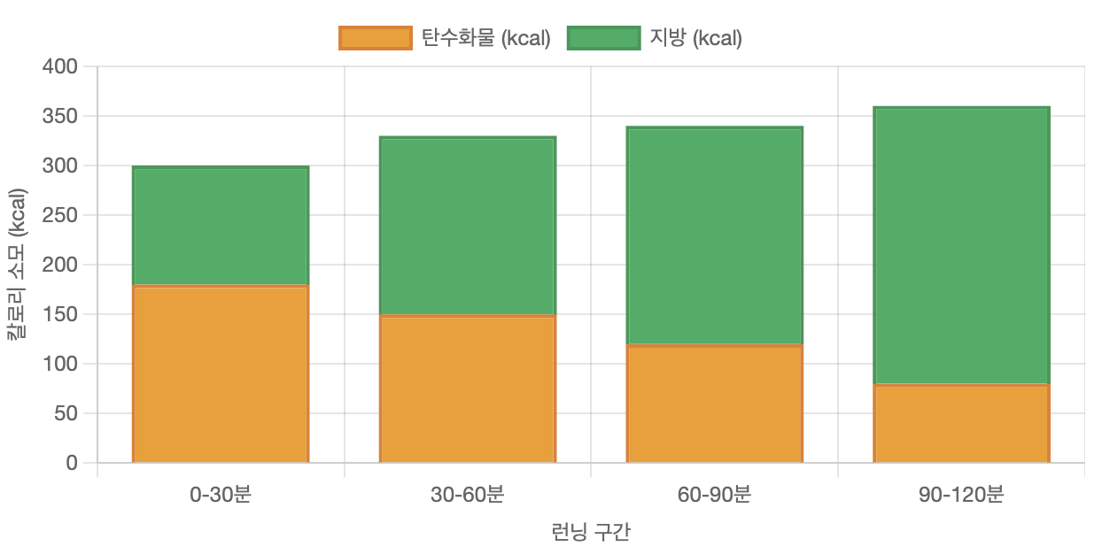 고급자 90분+ 장거리 런닝 시 에너지 소모 패턴
